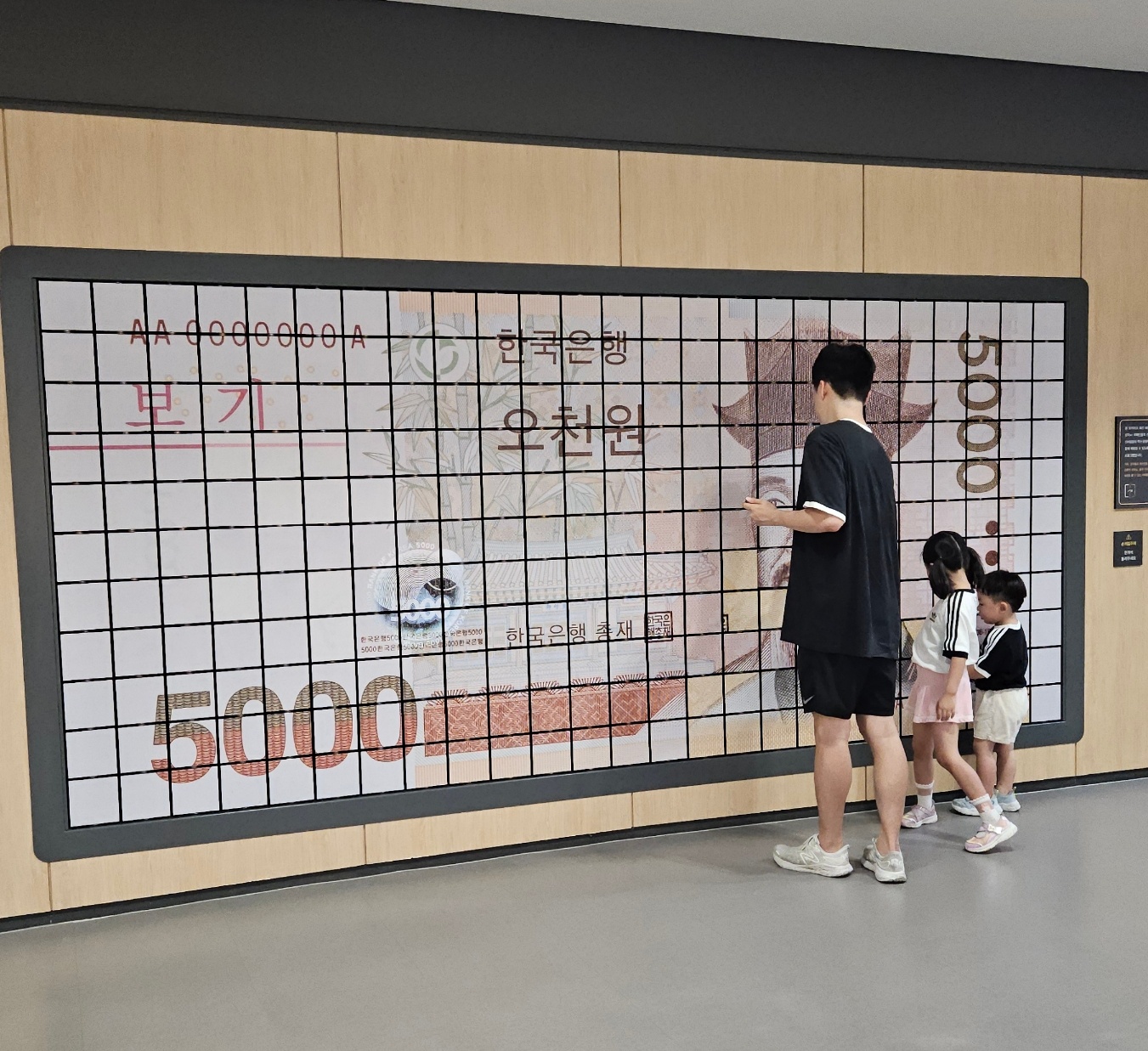 우리가 무심코 사용하는 화폐에 대해서 역사를 이해하고 이제 막 화폐에 대해서 배우는 아이들에게 흥미를 유발하고 기억에 남길 수 있는 시각 자료가 많아 흥미로운 곳이었습니다. 아이와 함께 이야기를 다양하게 나눌 수 있는 시간이었고 유치원에서 배운 것을 자랑하듯 이야기할 수 있는 시간이었습니다. 단순하지만 외국인들도 즐거워한 체험프로그램과 다양한 전시물이 이곳의 장점이라고 할 수 있겠습니다. 단점이라면 생각보다 작은 공간과 매우 더운 여름 입구에서 이곳까지 걸어오는 길이 아이들에게는 험난했다는 것이었습니다.