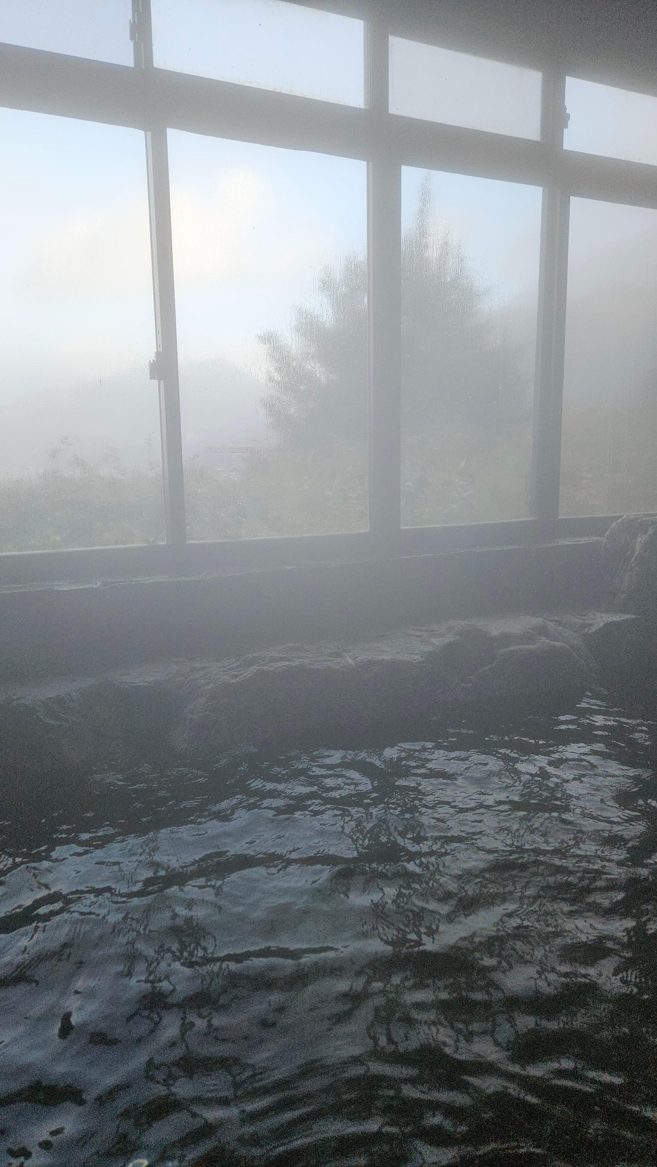 눈보라로 인해 숙소에 일찍 도착하여 입실할때 고를 수 있는 온천 시간대가 다양하게 있었습니다. 우리는 저녁을 먹고 온천을 이용하고 잠드는 것을 선택하여 저녁 7시와 아침에는 7 시대를 선택하였습니다. 저녁에는 50분 아침에는 30분씩 이용할 수 있었고 저녁에는 5시부터 11시 때까지 아침에는 6시부터 8시 때까지 선택을 할 수 있었습니다. 온천은 3~5명이 이용할 수 있는 대욕장과 1~2명이 이용할 수 있는 소욕장이 있었습니다. 우리 가족은 아빠와 남편, 아이들과 엄마와 저로 나누어서 이용하였고 저녁에는 여자팀이 대욕장을 아침에는 소욕장을 이용하였습니다. 온천은 들어가면 문을 잠글 수 있었고 이용 중이라는 팻말로 변경하여야 했습니다. 들어가자마자는 세면대와 옷을 벗어놓을 공간이 있고 손세정제와 스킨, 로션이 있었습니다. 대욕장은 온천을 이용하는 느낌이 가득하고 창밖으로 풍경이 너무 멋졌습니다. 소욕장은 정말 작은 목욕탕 같은 느낌이었습니다. 소욕장은 밖으로 나가는 문이 있었으나 지금은 사용하지 않는 거 같았습니다. 온천물이라 다소 뜨거운 감이 있었으나 창문을 살짝 열어놓았더니 알맞게 온도가 맞춰지는 느낌이었습니다. 아이들은 뜨거웠는지 몸을 다 담그지 못하고 발만 담그면서 물을 가지고 놀기도 하였습니다. 숙소에 샤워시설이 없어 저녁과 아침에 모두 이용하면서 몸도 따뜻해지고 매끈해지는 느낌이었습니다.